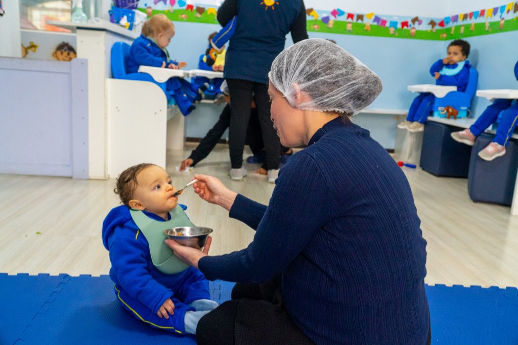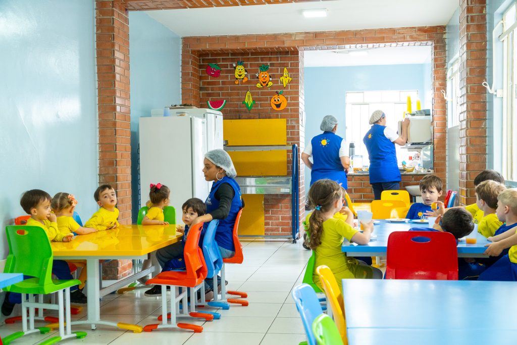 Espaço amplo e organizado, onde as crianças fazem suas refeições com conforto e autonomia.
